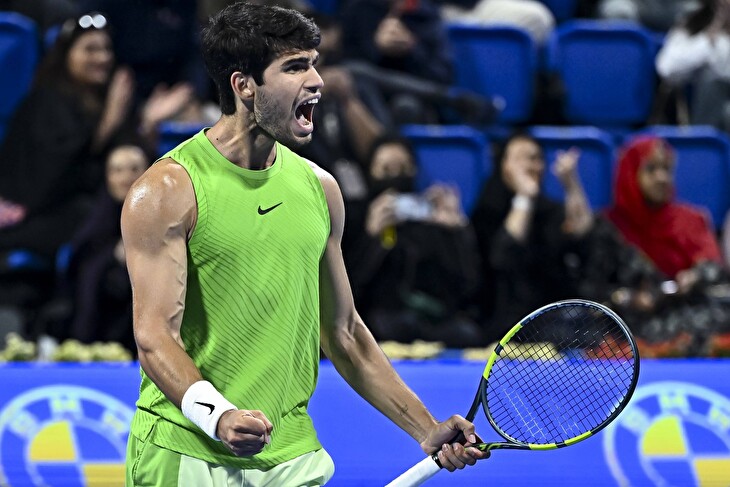 Alcaraz ve finále pětistovky v Dauhá sebral Filsovi podání hned v úvodním gamu a brejk potvrdil čistou hrou. Další brejkboly si Španěl vypracoval v pátém gamu. První dva ještě Francouz suverénně odvrátil, ten třetí už ale první hráč světa využil a odskočil do vedení 4:1. Na servisu pokračoval v dominanci a první sadu získal za necelou půl hodinu hry.