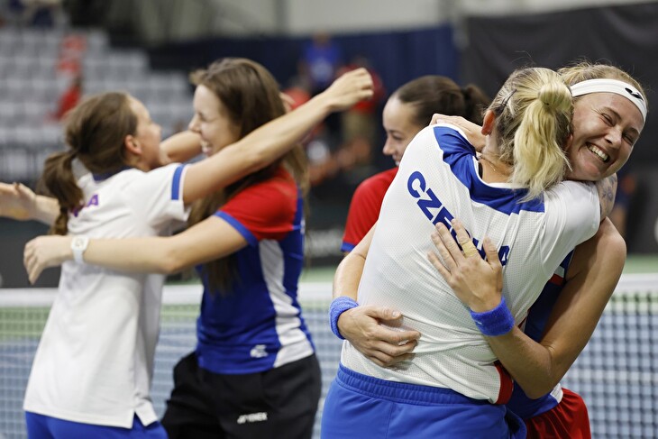 Obrovská radost českých tenistek po postupu na finálový turnaj (ČTK / Lebeda Pavel)